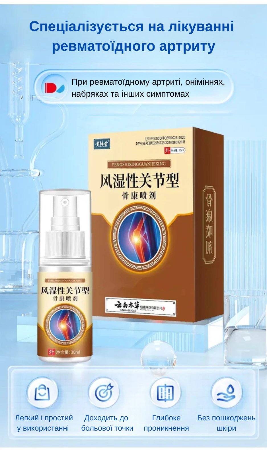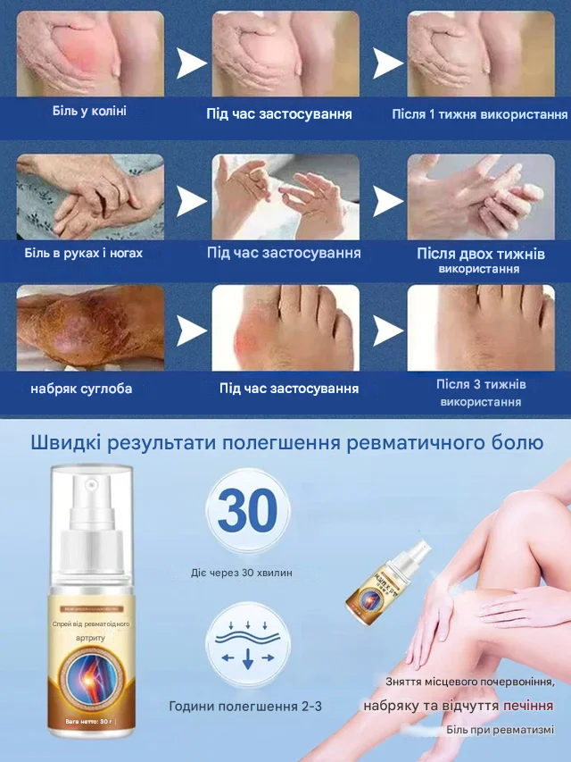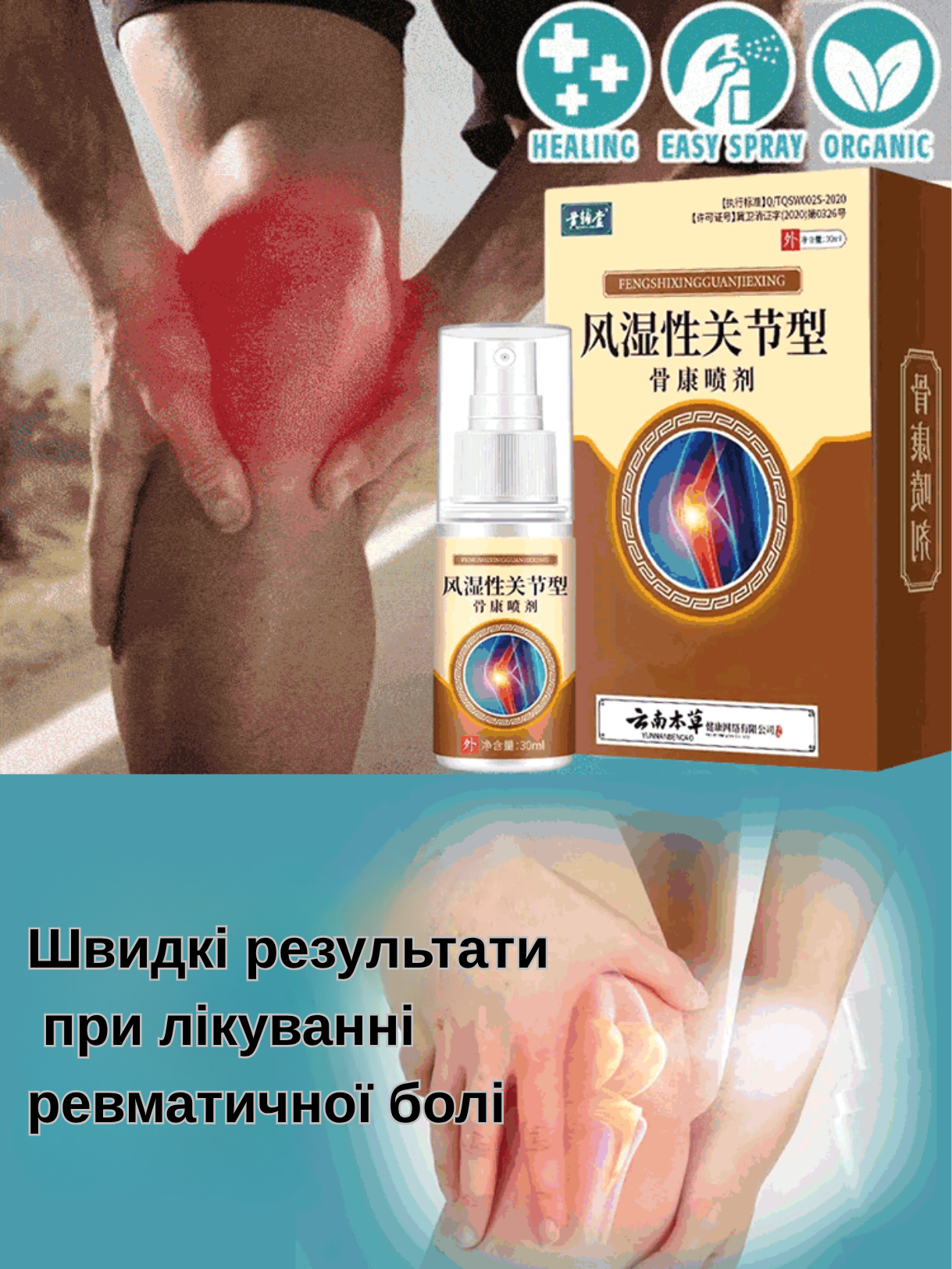 Спрей від болю в суглобах діє безпосередньо на причину болю. Натуральні компоненти, такі як екстракт арніки, ментол і олія евкаліпту, швидко проникають у тканини, знімають запалення та покращують кровообіг.